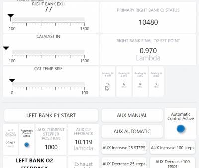 Breakpoints are useful for keeping sections separated. For example, a breakpoint can be added to separate the left and right bank of a dashboard as in the AFR-500. A breakpoint is shown as a gray horizontal bar. When the user resizes the window, the leftmost grid below the breakpoint is always going to be the leftmost grid no matter how the window is resized. The grids after the leftmost grid will flow to the right until there is no more screen space, and then the next grid will be to the left and below.