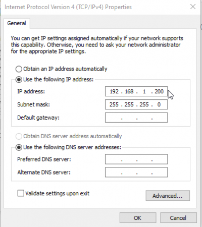 - More than likely the subnet mask will populate automatically, however it should be 255.255.255.0