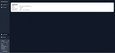 Selecting the application view brings up the builder version that was used to build the dashboard, the name of the terminal window release, and its version information along with the date that it was built.