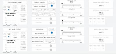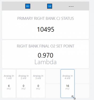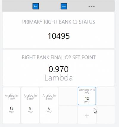 Breakpoints are useful for keeping sections separated. For example, a breakpoint can be added to separate the left and right bank of a dashboard as in the AFR-500. A breakpoint is shown as a gray horizontal bar. When the user resizes the window, the leftmost grid below the breakpoint is always going to be the leftmost grid no matter how the window is resized. The grids after the leftmost grid will flow to the right until there is no more screen space, and then the next grid will be to the left and below.